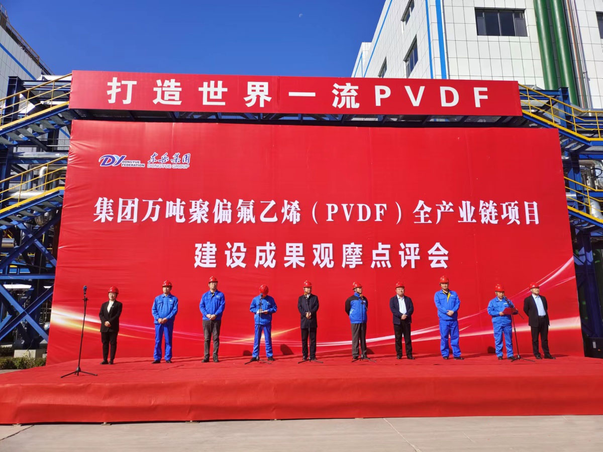 10月17日,從東岳集團傳來振奮人心的消息,萬噸PVDF全產業鏈項目,包括新萬噸PVDF、2萬噸VDF項目及配套2.5萬噸R142b、2萬噸氟化氫,以及延鏈補鏈強鏈2萬噸TFE、R32技改6萬噸R22等項目,均已建成投產。東岳集團黨委書記、董事局主席張建宏說:“今天,東岳集團用萬噸鋰電用PVDF全產業鏈投產的實際行動,來慶祝我們偉大的中國共產黨第二十次全國代表大會的勝利召開。PVDF項目承載著國家在新能源賽道趕超世界先進水平,實現打破壟斷本土配套,趕超行業領域技術高峰的重任。我們通過十幾年的培育發展,在這個領域已經實現了全面超越。”
